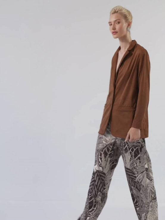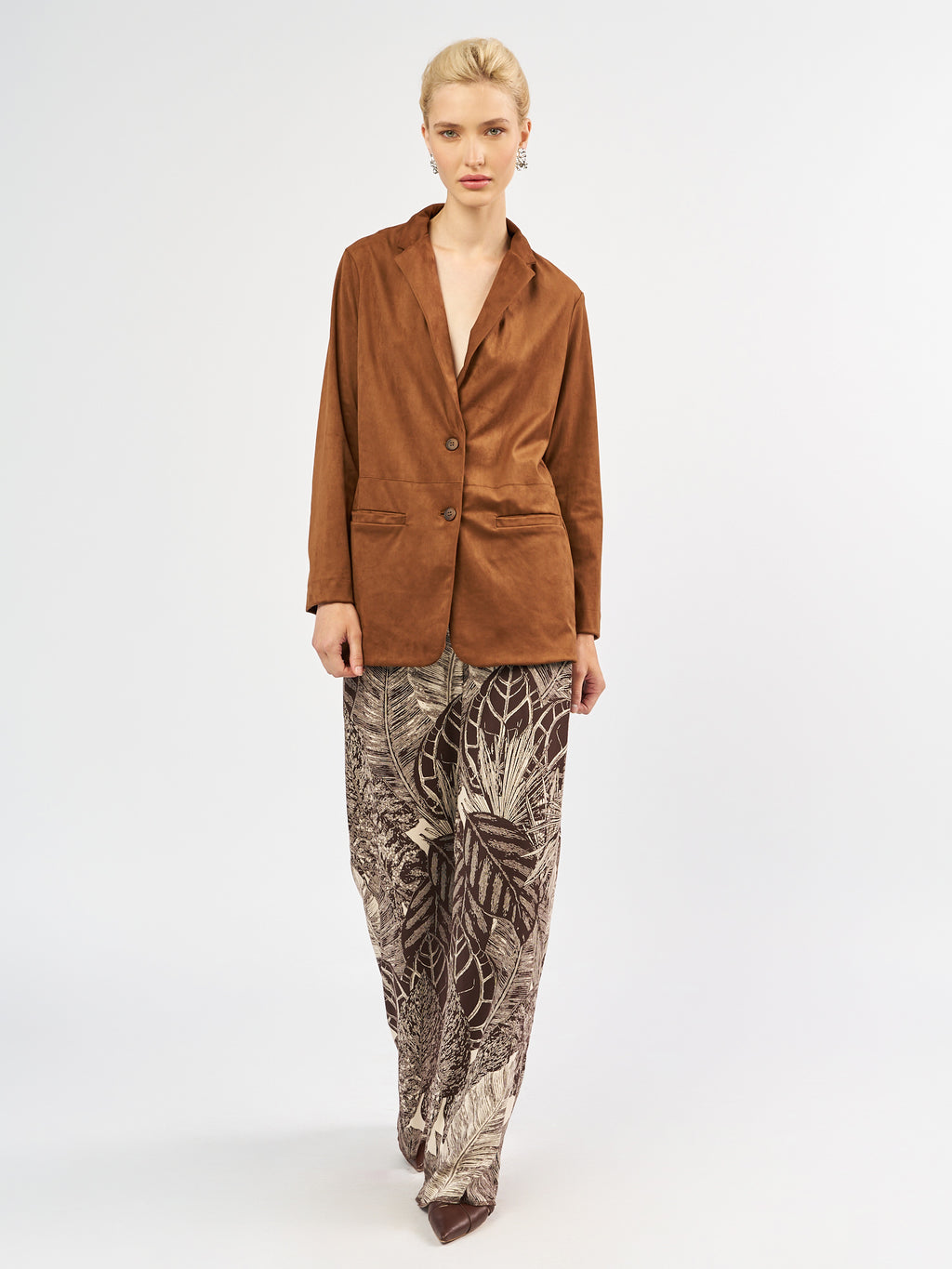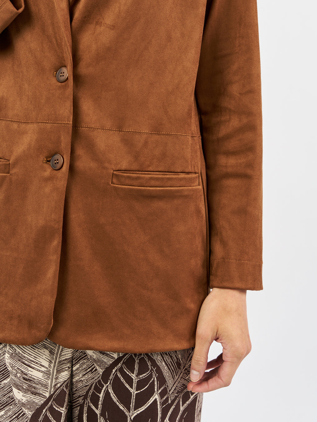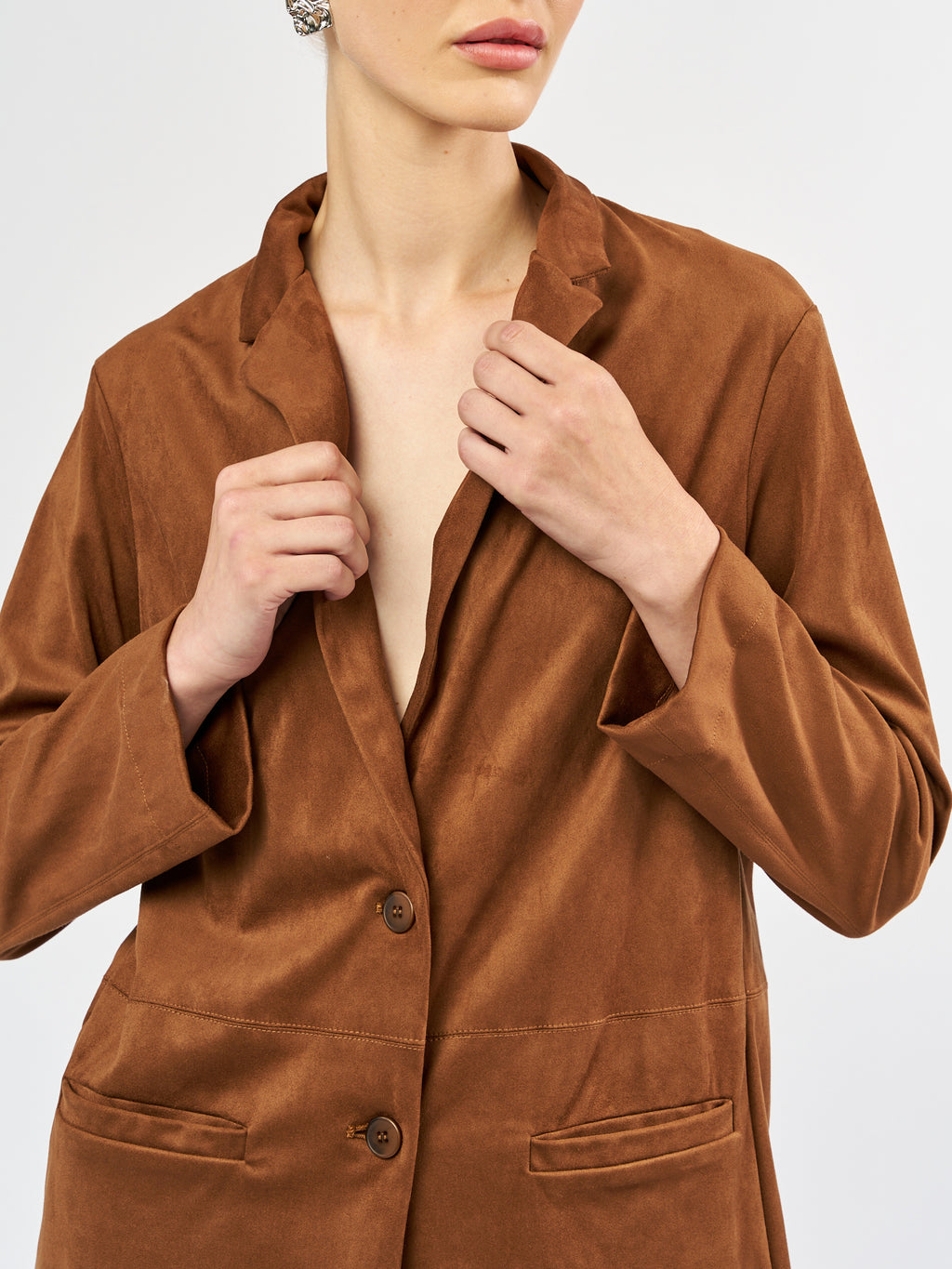 ז'קט פרנצ'סקה הוא פריט אלגנטי ומעודן בגזרה מחויטת קלה, עשוי בד במרקם זמש רך ונעים למגע המעניק לו מראה עשיר ומלטף מגיע עם שני כפתורים בחזית, צווארון מחודד וכיסי צד המוסיפים פונקציונליות וסגנון השרוולים הארוכים והגזרה הישרה יוצרים מראה נקי ומודרני, אידיאלי לשילוב מעל שמלה או עם מכנסיים מחוייטים ללוק עסקי, וגם עם ג'ינס לשיק יומיומי