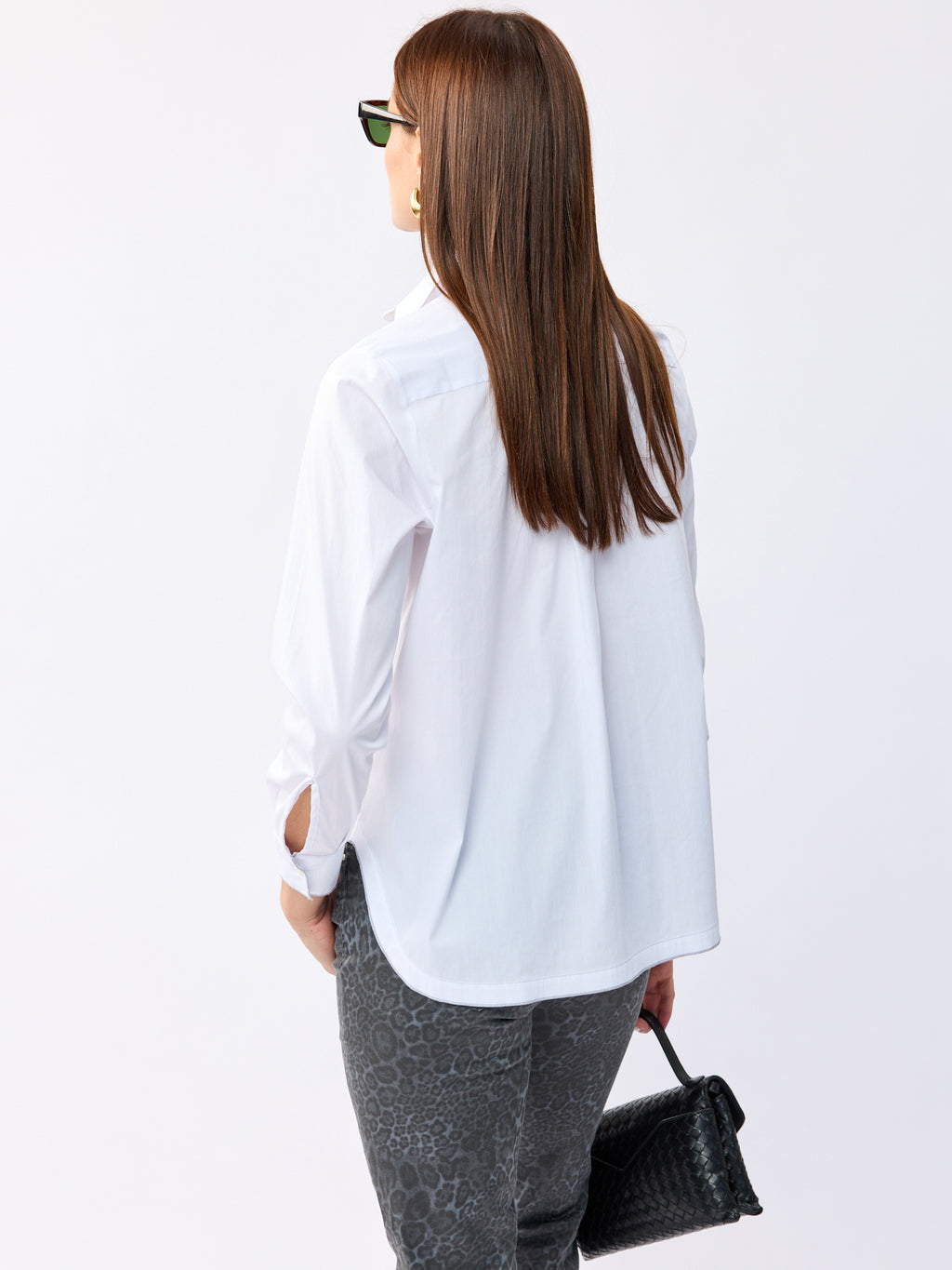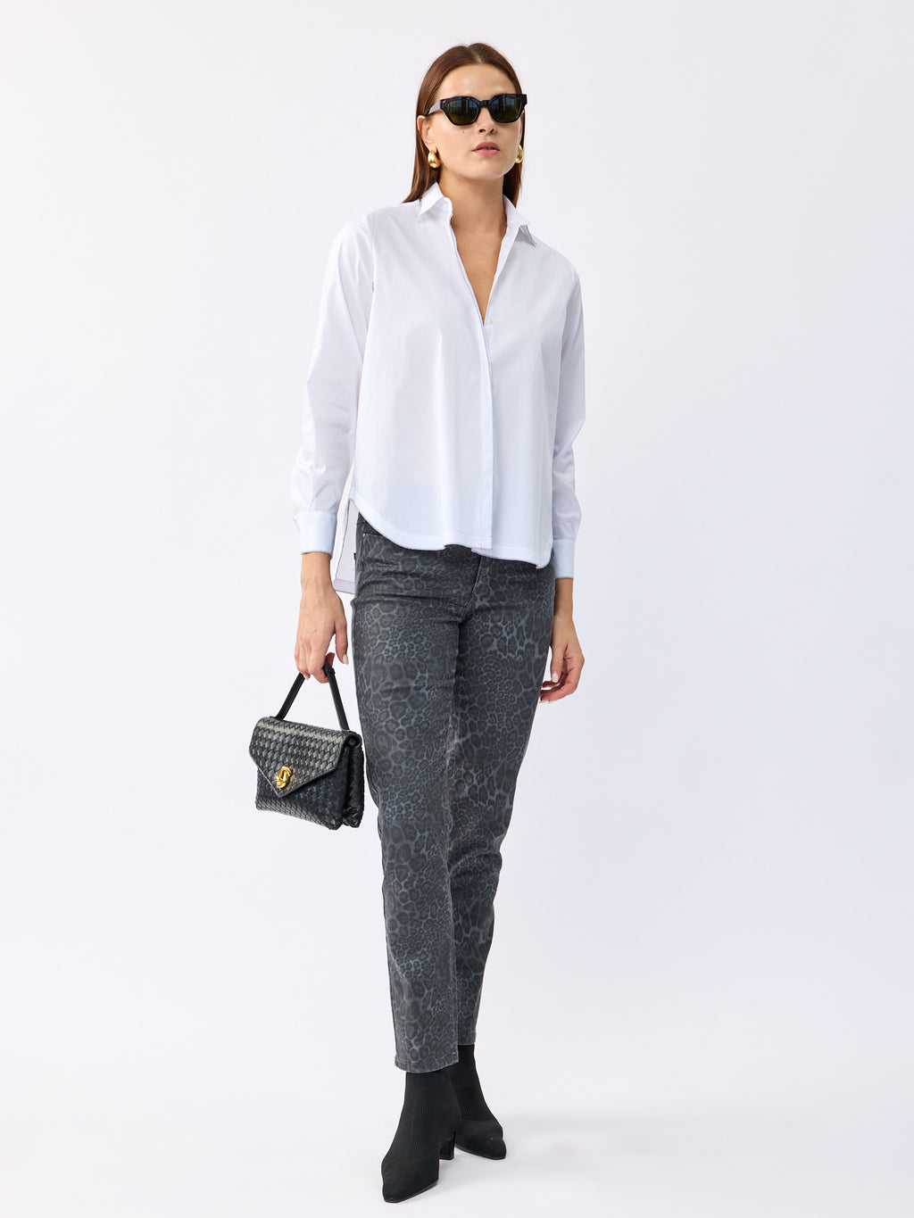 חולצת כפתורים קלאסית עם טוויסט מודרני, בגזרה רכה ומשוחררת שמחמיאה לגוף ויוצרת מראה קליל ואלגנטי כאחד. עשויה מבד כותנה נעים ואוורירי עם נפילה טבעית
