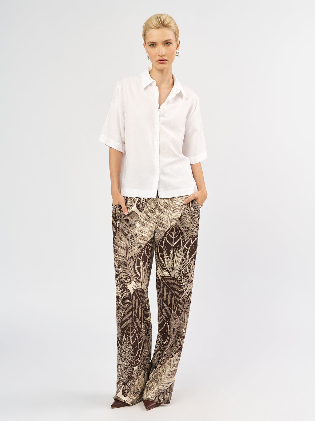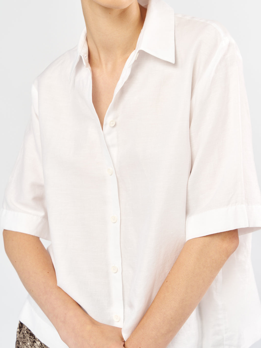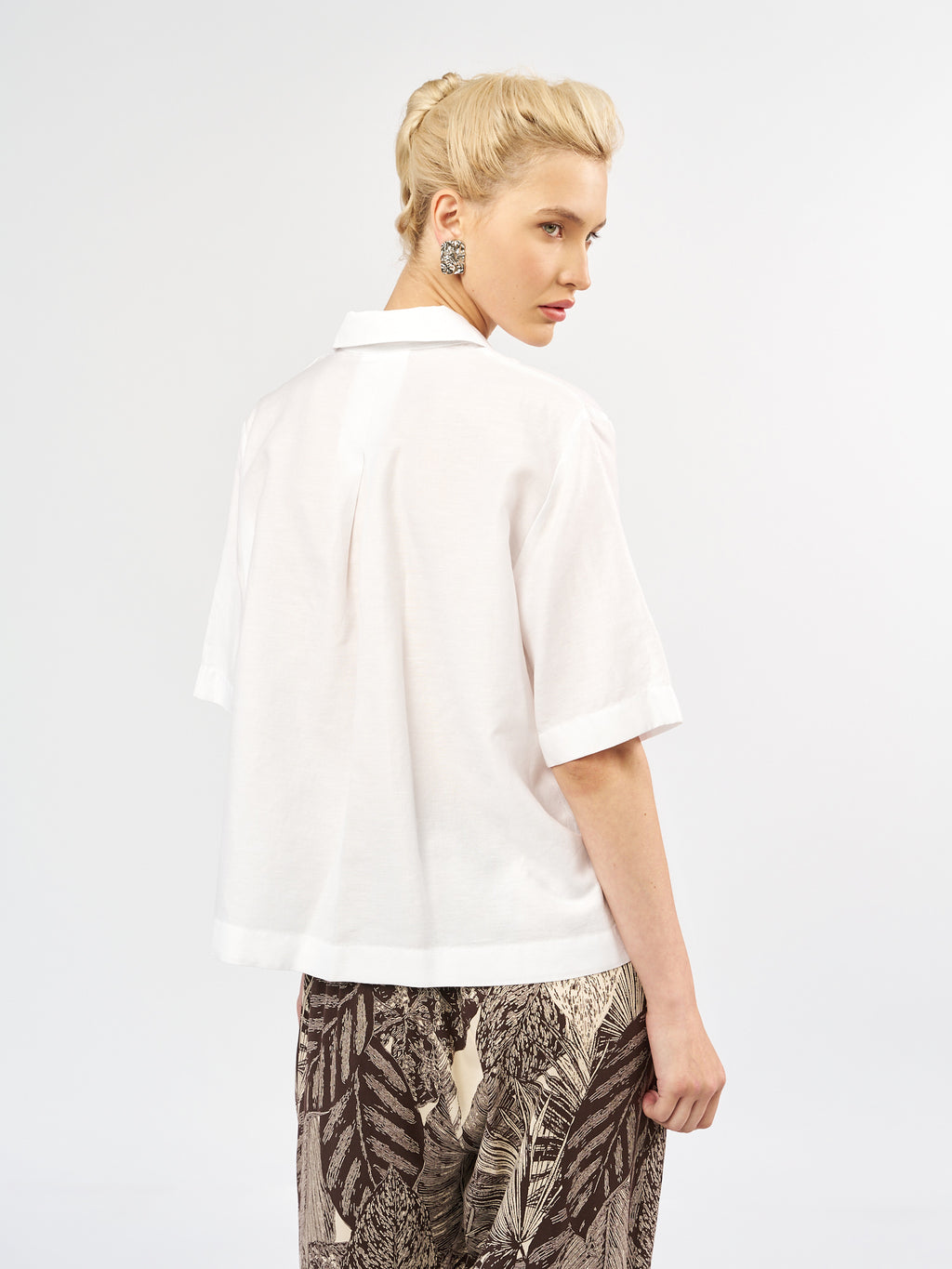 חולצת דרסי מציעה פרשנות מודרנית לפריט קלאסי ואלגנטי – גזרת בוקסה רחבה עם שרוול קצר, צווארון קלאסי מכופתר וקפל בגב לתנועה רכה ונפילה טבעית. עשויה מבד כותנה-לינן איכותי עם מרקם קליל אך יציב, בגימור מינימליסטי ונקי. הגזרה מאפשרת שילוב מושלם עם פריטים מחויטים או עם מכנסי דנים ליצירת מראה מעודכן אך על-זמני.