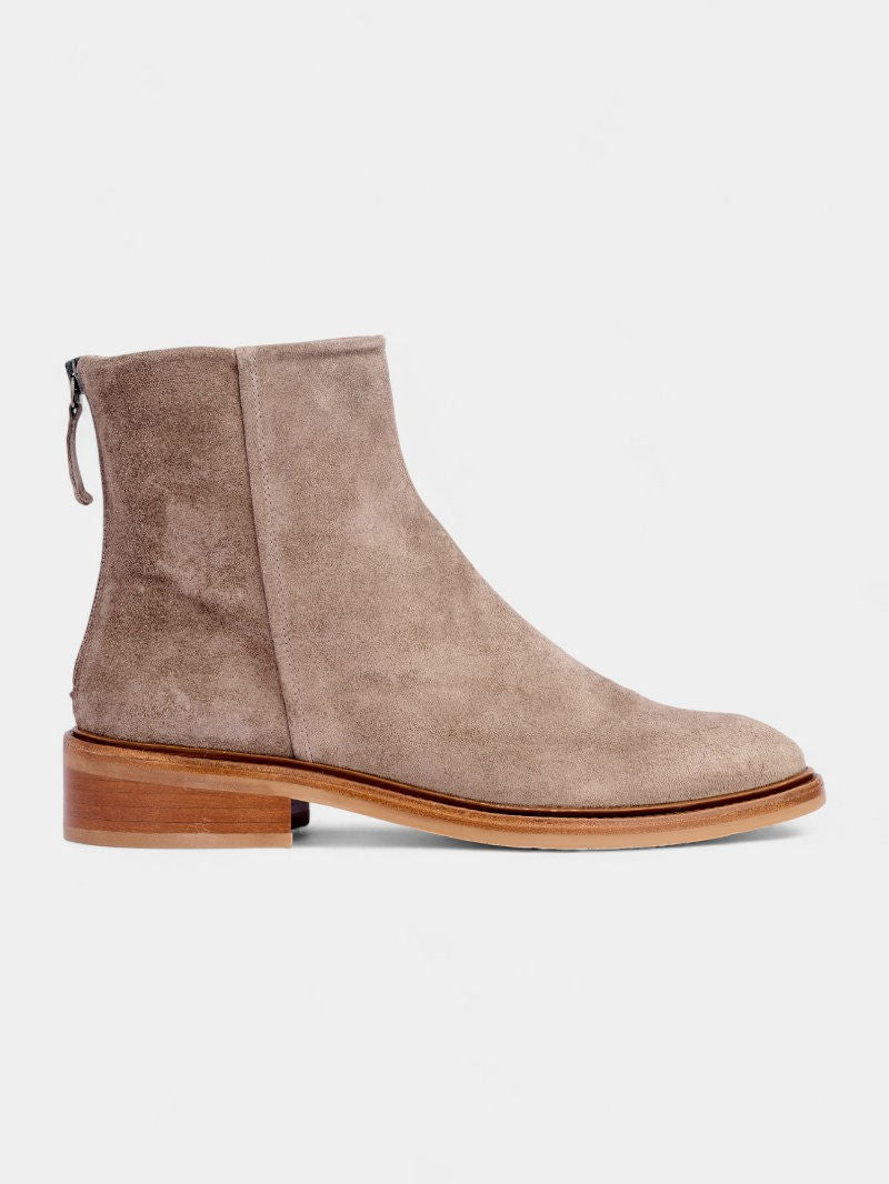 מגפון קלאסי ואלגנטי בעיצוב מינימליסטי, עשוי כולו 100% עור זמש איכותי במרקם רך ומלטף.