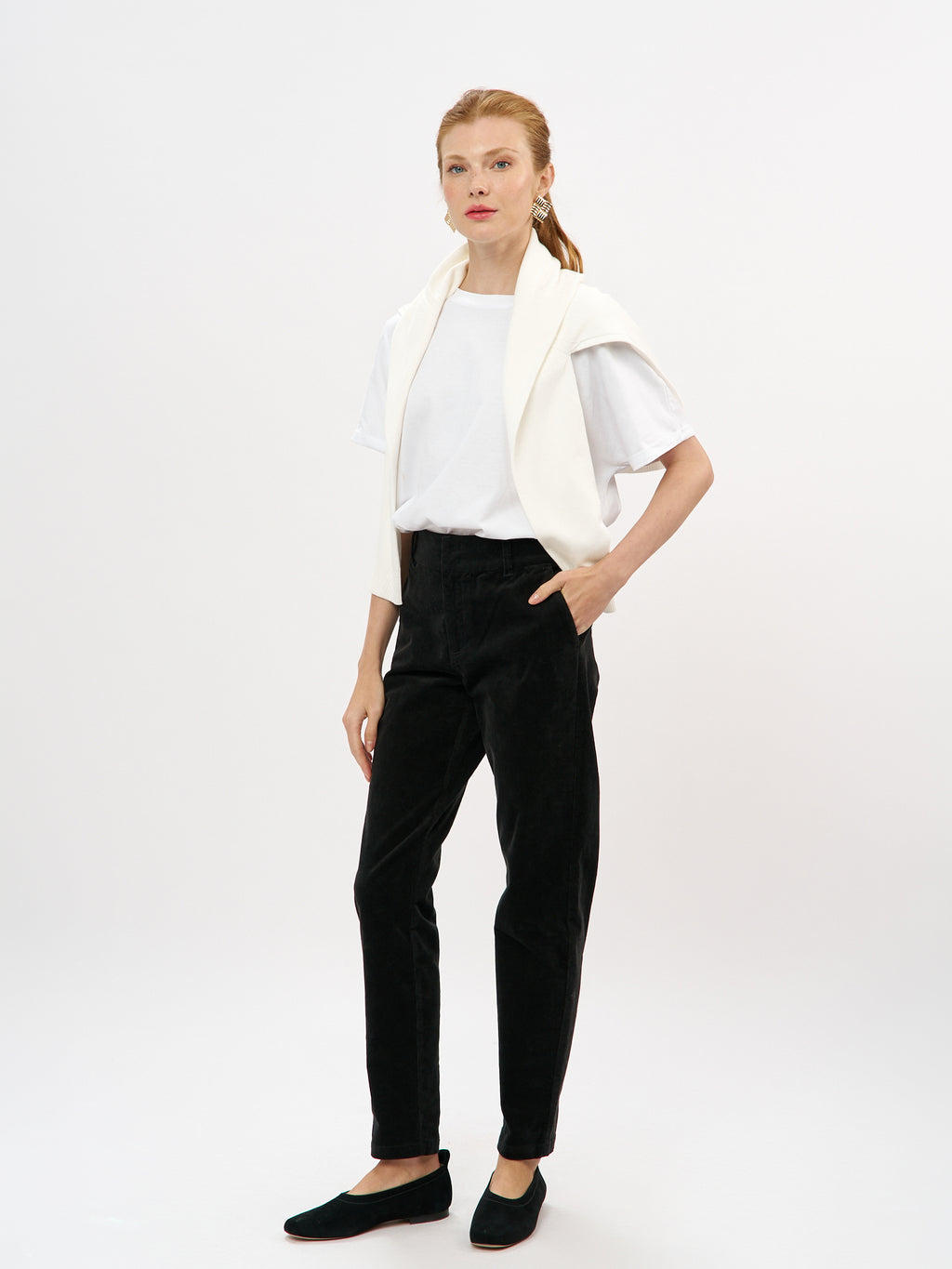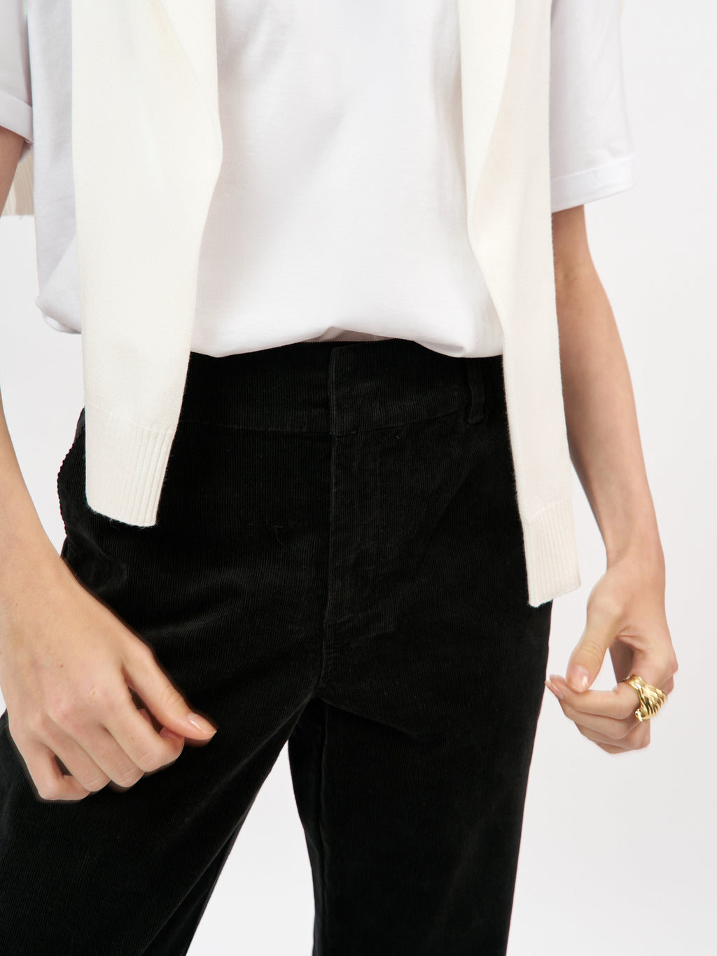 מכנסי סלינה עשויים בד קורדרוי רך וגמיש עם מגע קטיפתי ומראה עשיר. גזרה ישרה ונקייה עם מותן נוחה ושמירה על קו מחמיא, מעניקה שילוב של נוחות, יציבות וסטייל קלאסי שמעולם אינו יוצא מהאופנה.