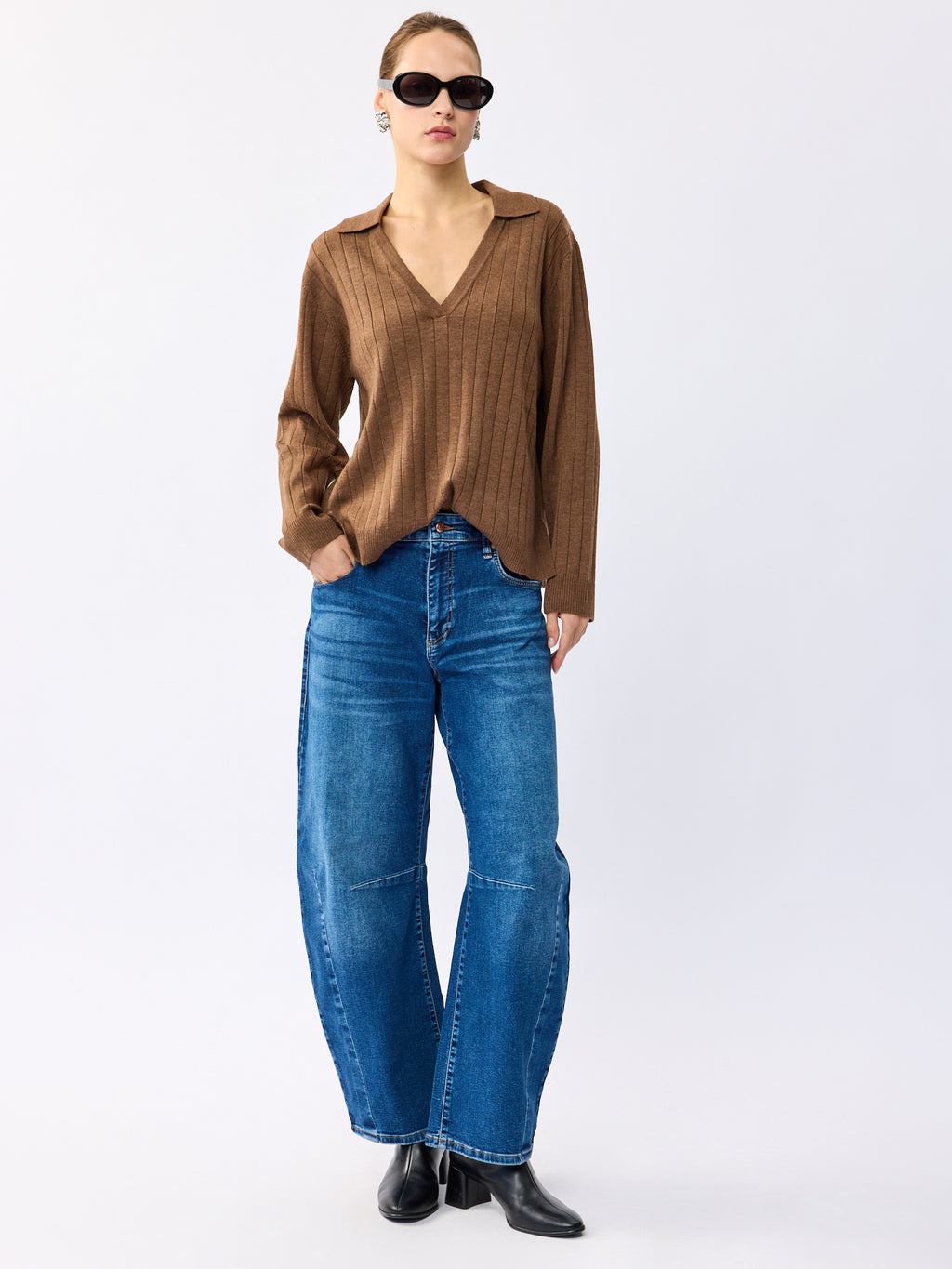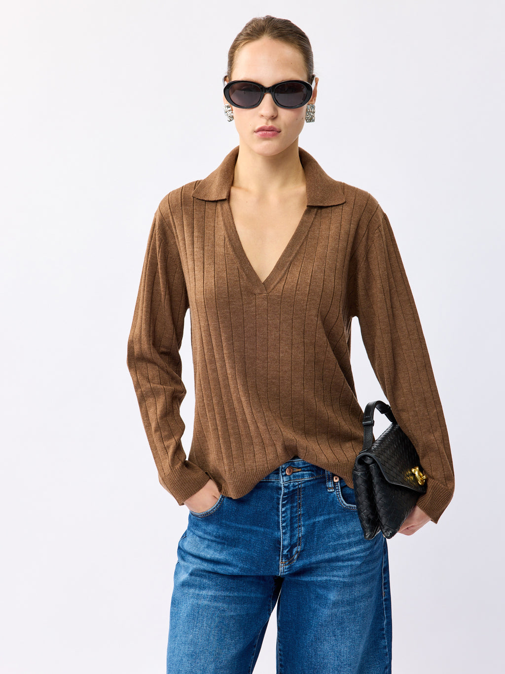 סריג דייזי הוא סריג דק בגזרת וי עם צווארון רך וסריגה אנכית מחמיאה. עשוי בד משולב עם צמר  נעים למגע, שרוולים ארוכים וגימורים נקיים המתאימים לשימוש יומיומי ולשכבות מעבר.