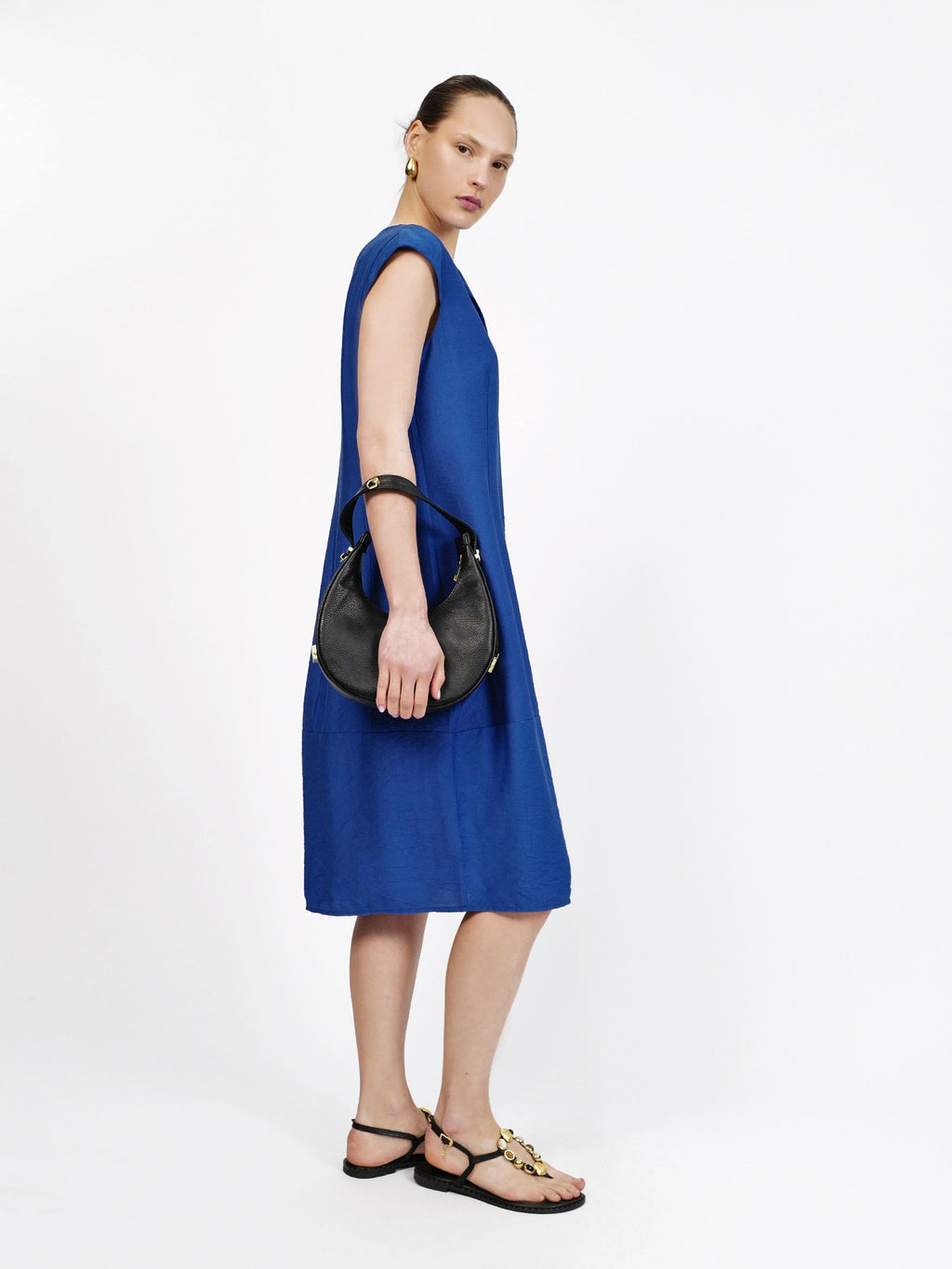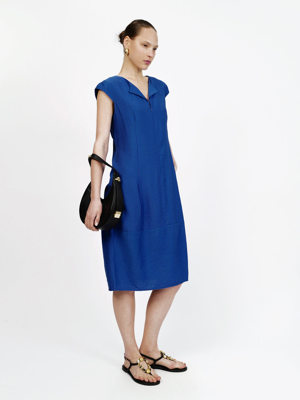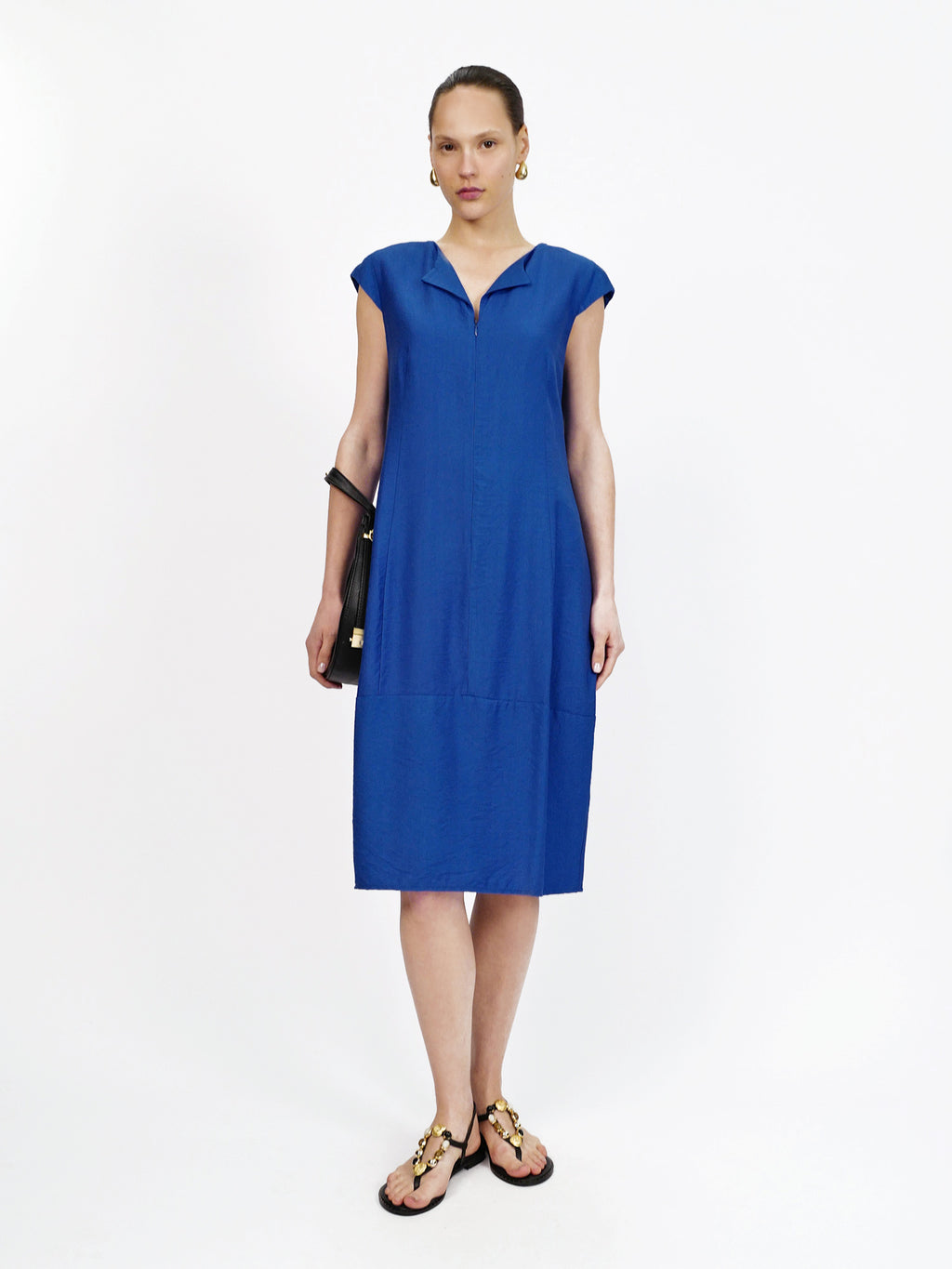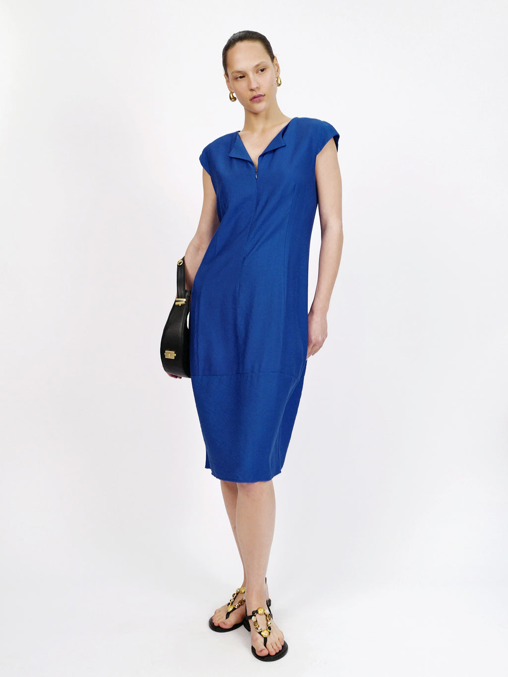 שמלת יוליה בצבע כחול רויאל היא שמלת מידי נקייה ומחמיאה בגזרה ישרה ומשוחררת, עם שרוולים קצרים ומפתח צוואר אלגנטי עם צווארון קטן ורוכסן עדין מלפנים. בד הוויסקוזה הנשפך מעניק תחושה קלילה ונעימה על הגוף, והאורך הקלאסי הופך אותה לבחירה מושלמת ליום עבודה, לאירוע קיצי או לערב עם האקססוריז הנכונים.