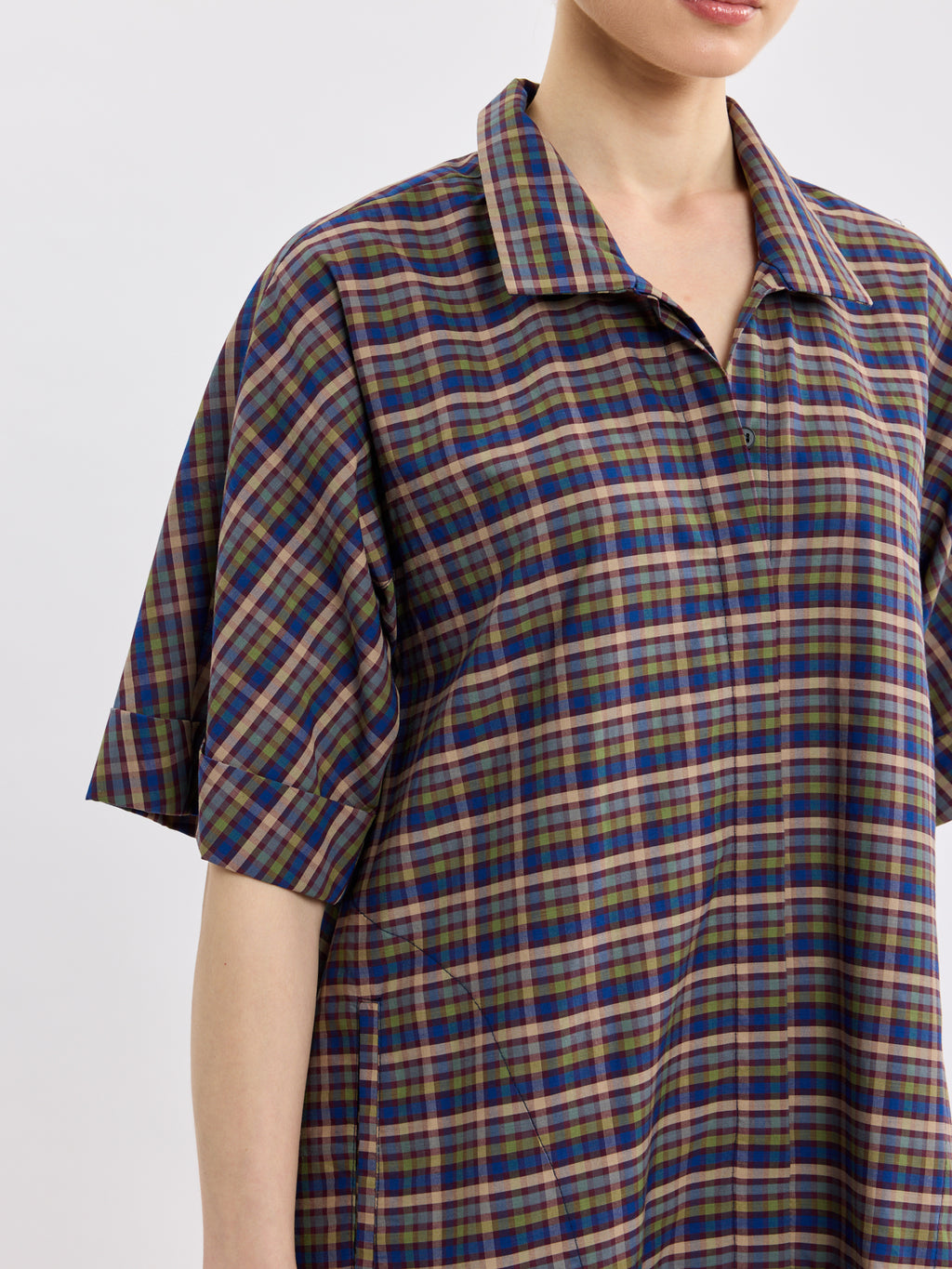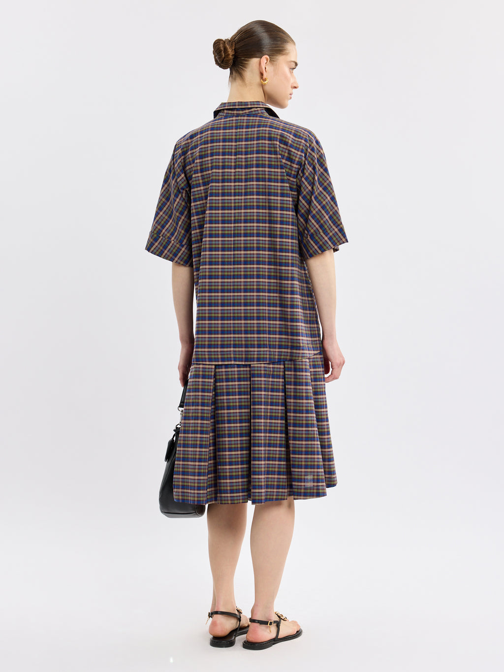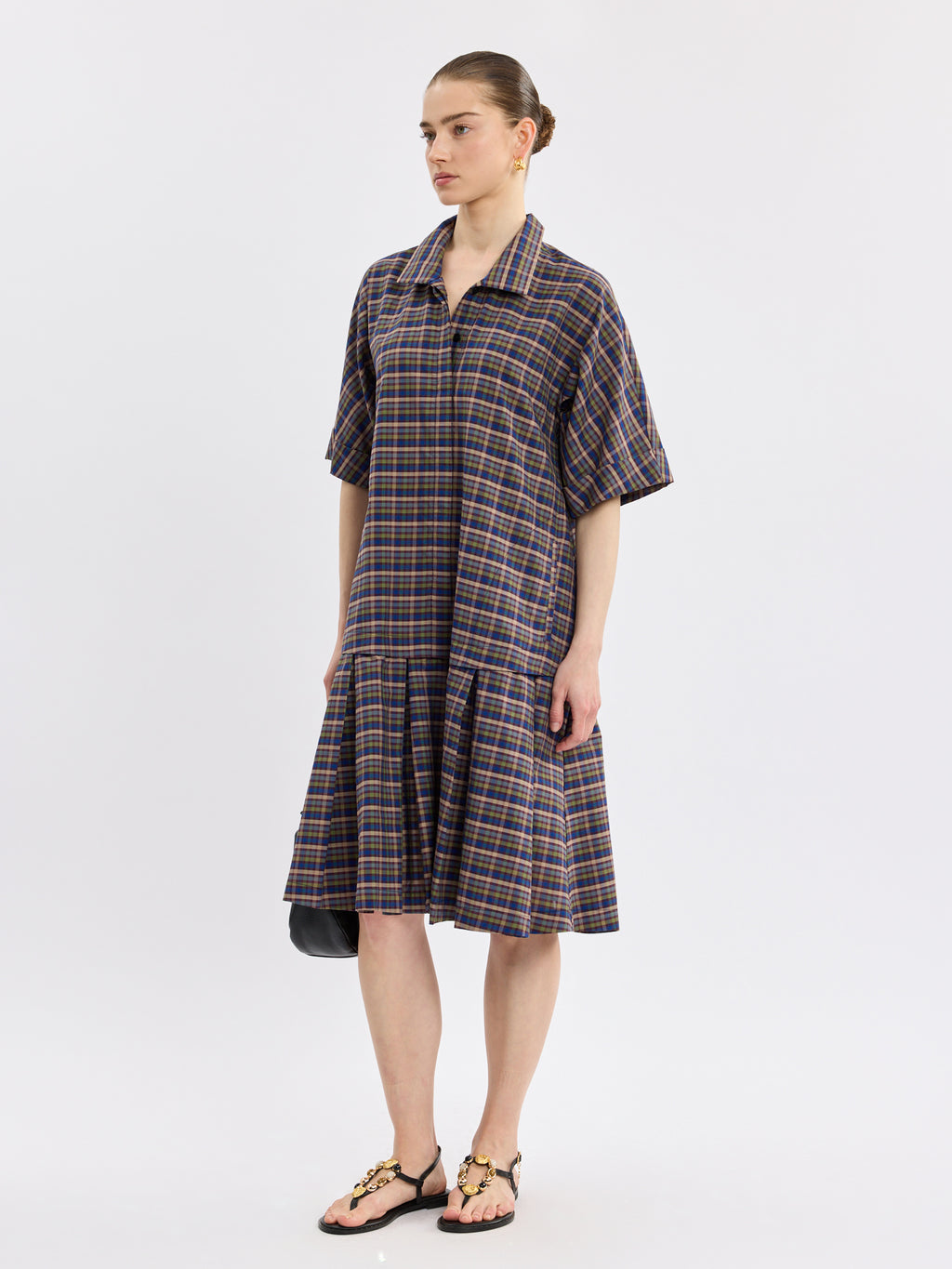 שמלת מידי עם צווארון ופתיחה מכופתרת, בגזרה נינוחה ומוקפדת שמרגישה אלגנטית בלי מאמץ. מגיעה בשחור קלאסי או בדגם משבצות עדין שמוסיף עניין מדויק.