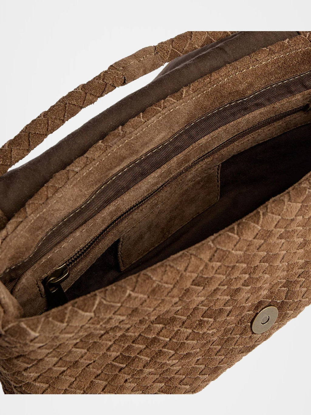 תיק שהוא חגיגה של עבודת יד ועיצוב מדויק. עשוי 100% זמש בקליעה ידנית עשירה שמעניקה לו מראה יוקרתי, אלגנטי ושיקי במיוחד. פריט סטייטמנט על־זמני שמשתלב בקלות בכל לוק. התיק נסגר בדש עם מגנט נסתר לגימור נקי ומוקפד, ובפנים כיס קטן עם רוכסן ושני תאים פתוחים לטלפון, כדי שהכול יישאר מסודר ונגיש. רצועת הכתף הניתקת מחוברת בצורה דיסקרטית מבפנים כך שאפשר להפוך אותו בקלות גם לקלאץ’ לערב. קליל, פרקטי ומלא סטייל - תיק שתלכי איתו עונה אחרי עונה.